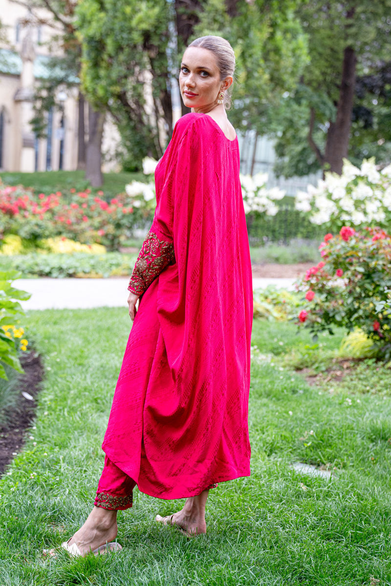 Embrace sophistication with our signature belted kaftan shirt, a blend of modern style and timeless elegance. The cuffed pants complement the shirt exquisitely, adorned with our iconic antique ari worked cuffs on both the belt and pant cuffs. This ensemble promises a unique and captivating look, making it a standout choice for any occasion where comfort meets luxury in perfect harmony.