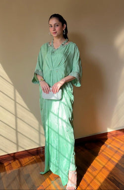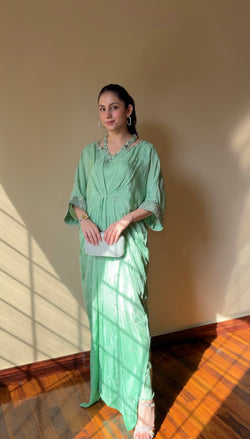 Silk Kamdani kaftan shirt with sequence and beadwork on neckline and sleeves