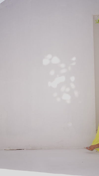This exquisite ensemble exudes grace and understated luxury, perfect for both daytime and evening festivities. The outfit features a chiffon shirt in a soft beige and lime green color palette, offering a fresh, elegant look that feels both soothing and sophisticated. The chiffon fabric drapes beautifully, giving the outfit a light, ethereal flow. The shirt is richly adorned with delicate silver zari work, meticulously embroidered along the neckline, sleeves, and a distinctive double-layered hemline. The silver threads catch the light subtly, adding just the right amount of shimmer and highlighting the craftsmanship without overpowering the design. The double-layered hemline adds a modern twist to the traditional silhouette, offering depth and structure to the flowing chiffon. Beneath the sheer chiffon shirt lies a cotton silk undershirt, ensuring both comfort and coverage. The cotton silk adds a gentle sheen and soft texture, creating a luxe base that complements the translucence of the chiffon overlay. Completing the look are classic silk Dhaka pants, tailored to perfection. Known for their elegant flare and fluidity, Dhaka pants bring a traditional flair while enhancing the overall silhouette. The silk fabric gives them a graceful fall and refined sheen, making them a sophisticated counterpart to the embellished top.