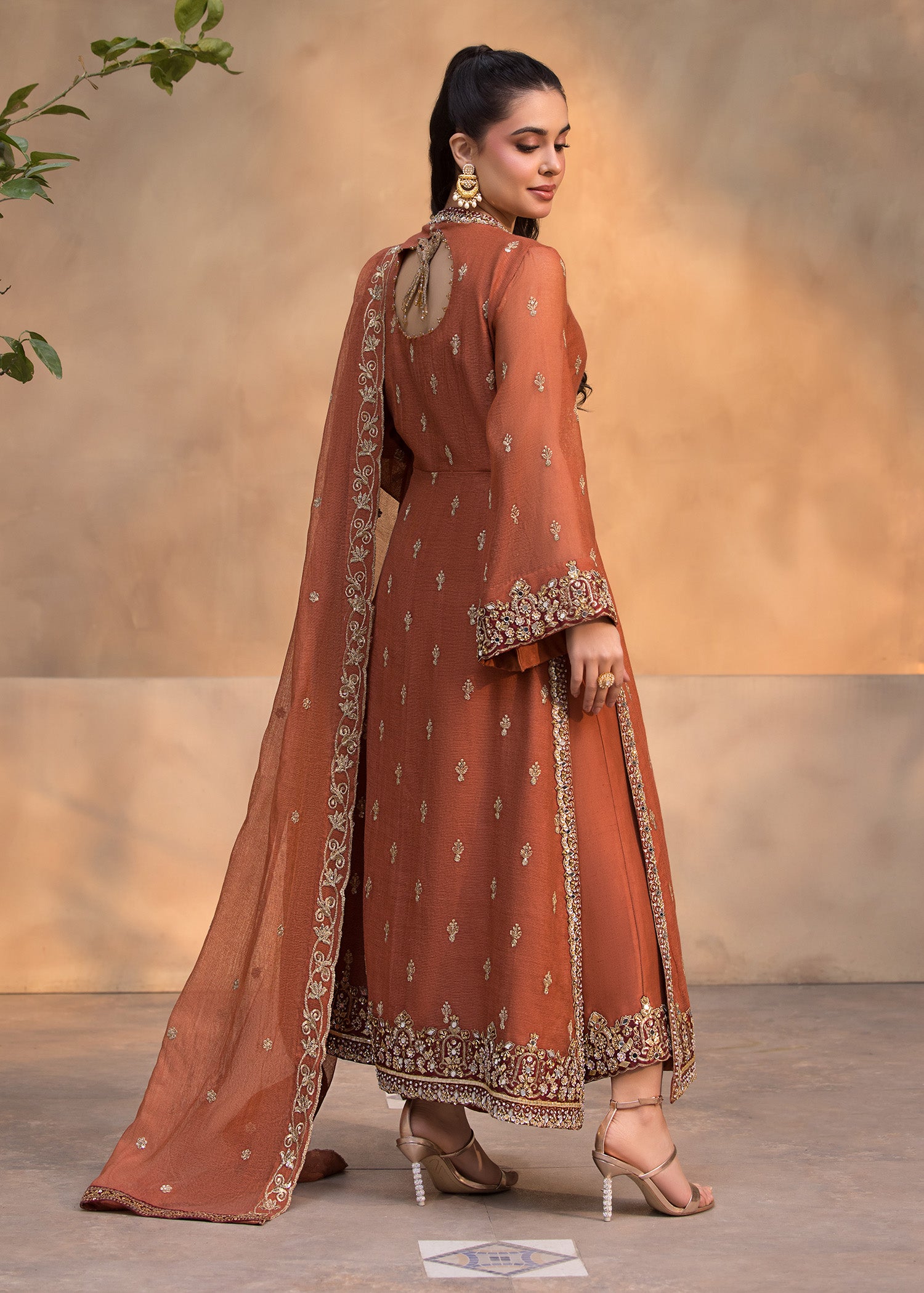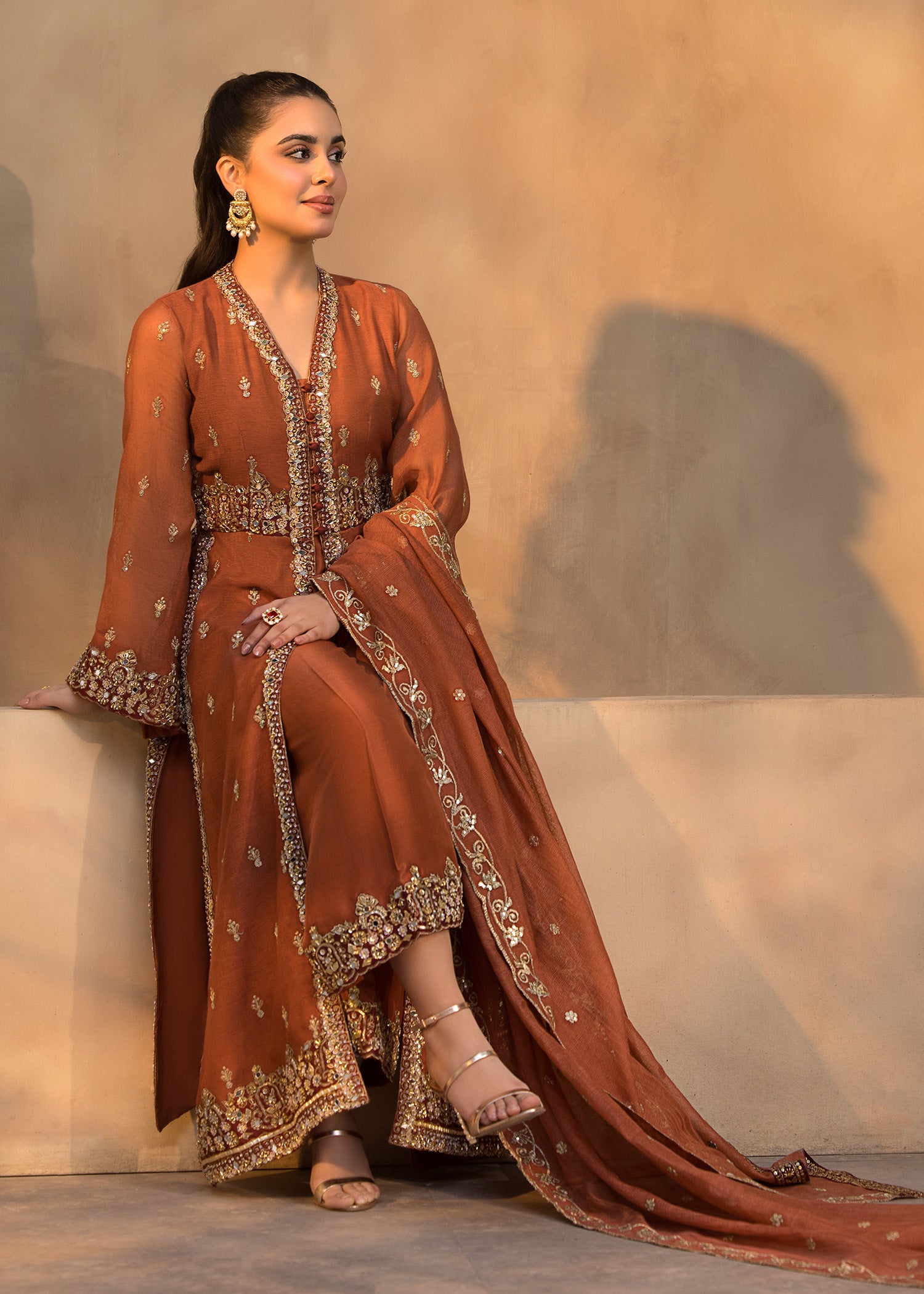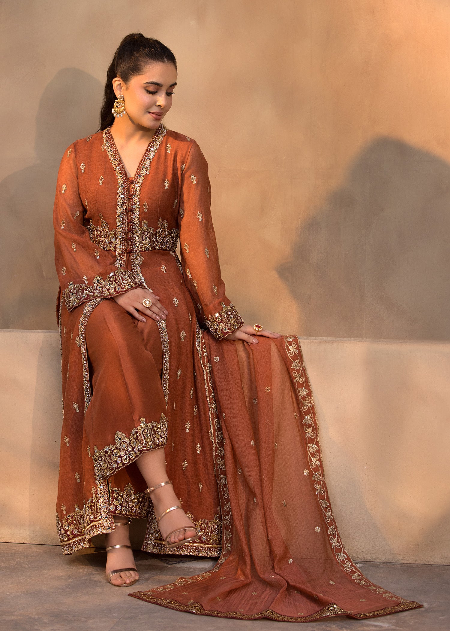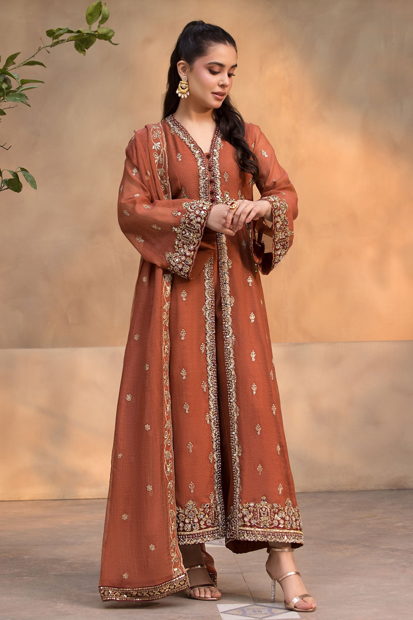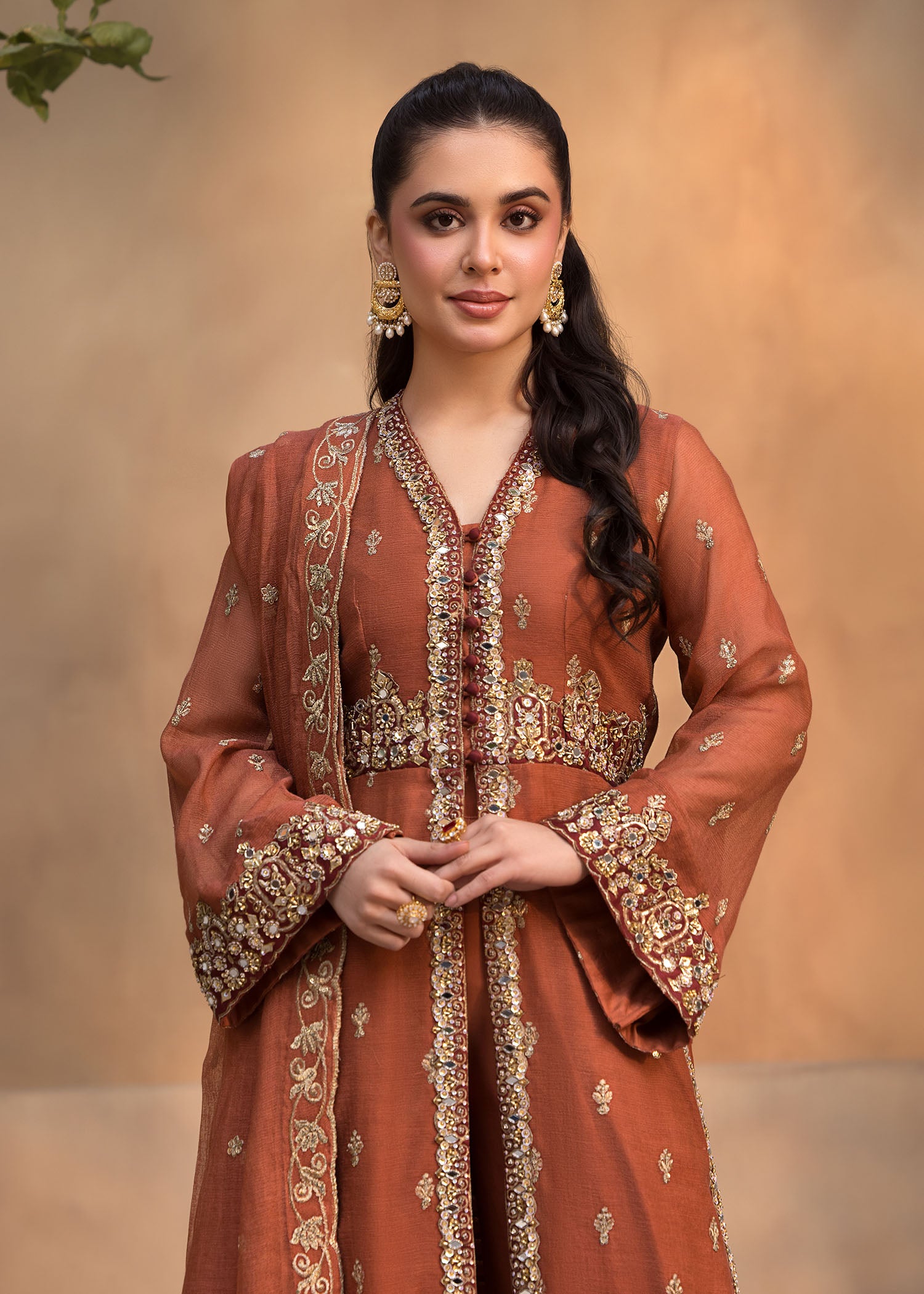 Front Open Hand embelished shirt with hand worked quellots and Dupatta.
