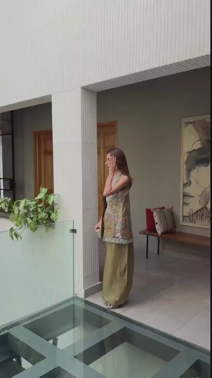Handcrafted pastel coloured chata patti tissue organza jacket with zardozi work Paired with inner shirt and wrapped dhoti pants